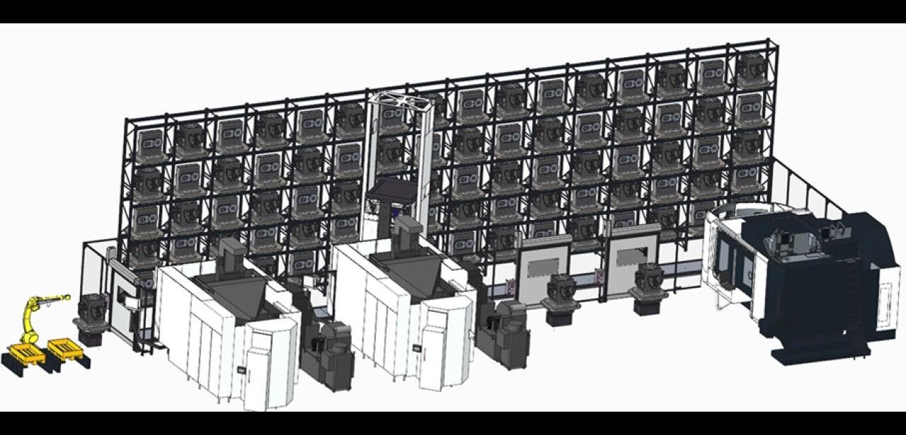 Der Linearpalettenspeicher von WASSERMANN fasst bis zu 99 Paletten und nutzt modulare Ladestationen in einer 4×90°-Drehversion oder als Dreh-Kipp-Einheit, um Nebenzeiten zu eliminieren und Stillstand zu vermeiden. Hauptzeitparallel ausgeführte Palettenwechsel erhöhen die Produktivität nachhaltig. Ergonomisches Handling von Spanntürmen auf Paletten verringert körperliche Belastung. Darüber hinaus sind alle Stationen bereits für eine nachträgliche Roboterintegration vorbereitet, sodass eine end-to-end Automationskette ohne Unterbrechungen realisiert wird. Setupzeiten optimiert, Ressourcen geschont, Performance erhöht, Auslastung maximiert.